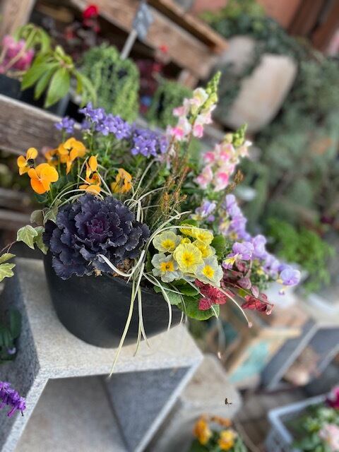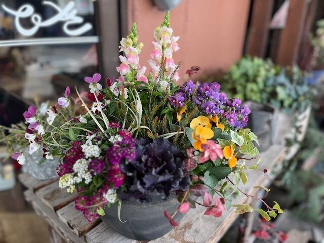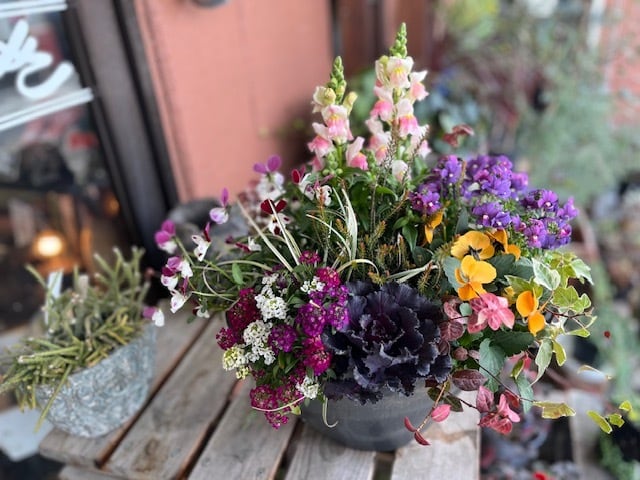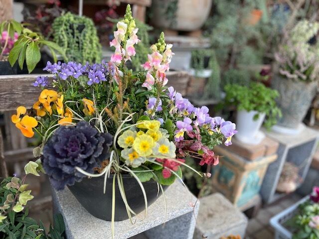 色鮮やかな花々で、季節を楽しむ寄せ植えです。