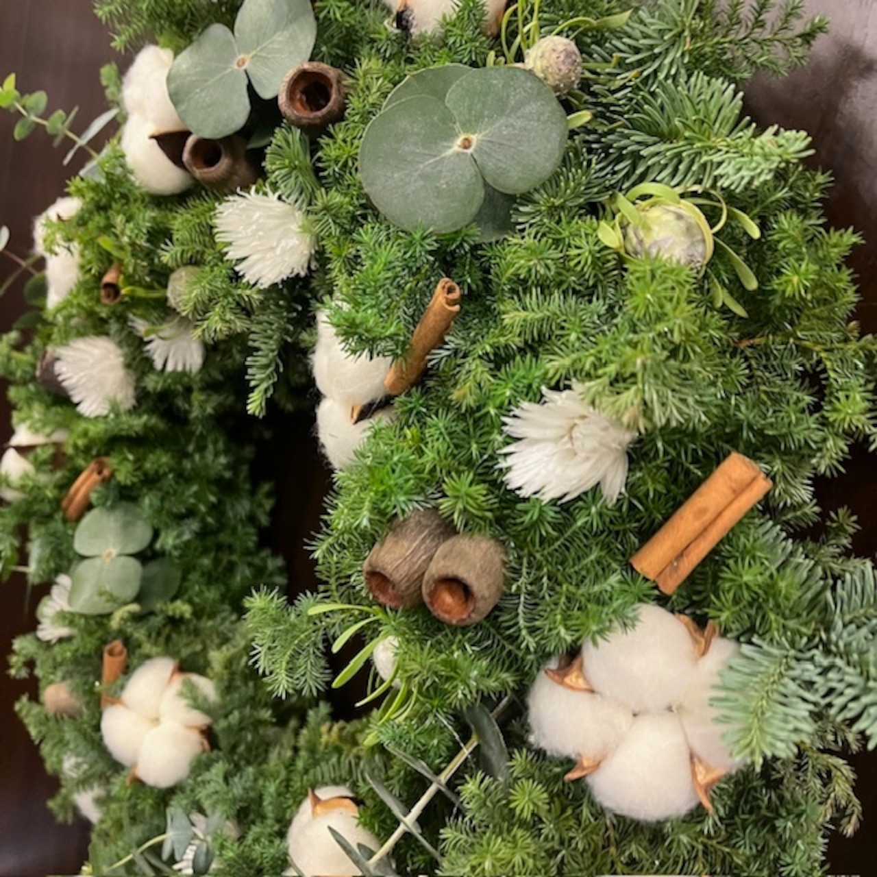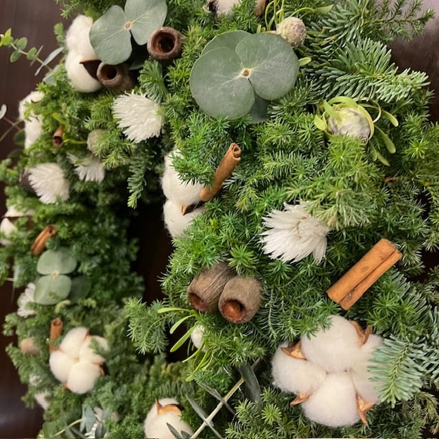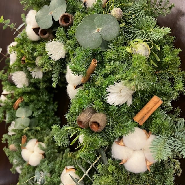 使用されている素材には、天然のモミの枝やヒムロ、コットンやシナモンなどの木の実がふんだんに使われており、心地よい香りと共にお部屋を彩ります。